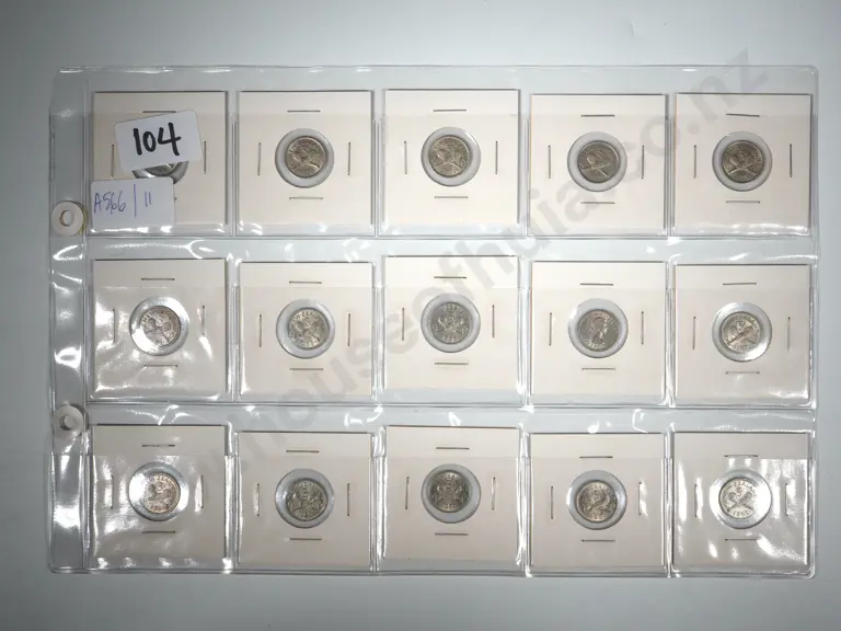 15 New Zealand Threepence's: 1x 1933, 1x 1934, 1x 1936, 1937, 1939, 1940, 1941, 3x 1942, 1943 / 1944 / 1945 /1946 /1947