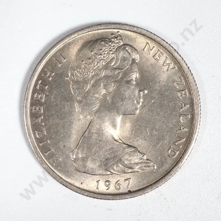 1967 New Zealand 5 Cent Coin - No Sea To Right Error