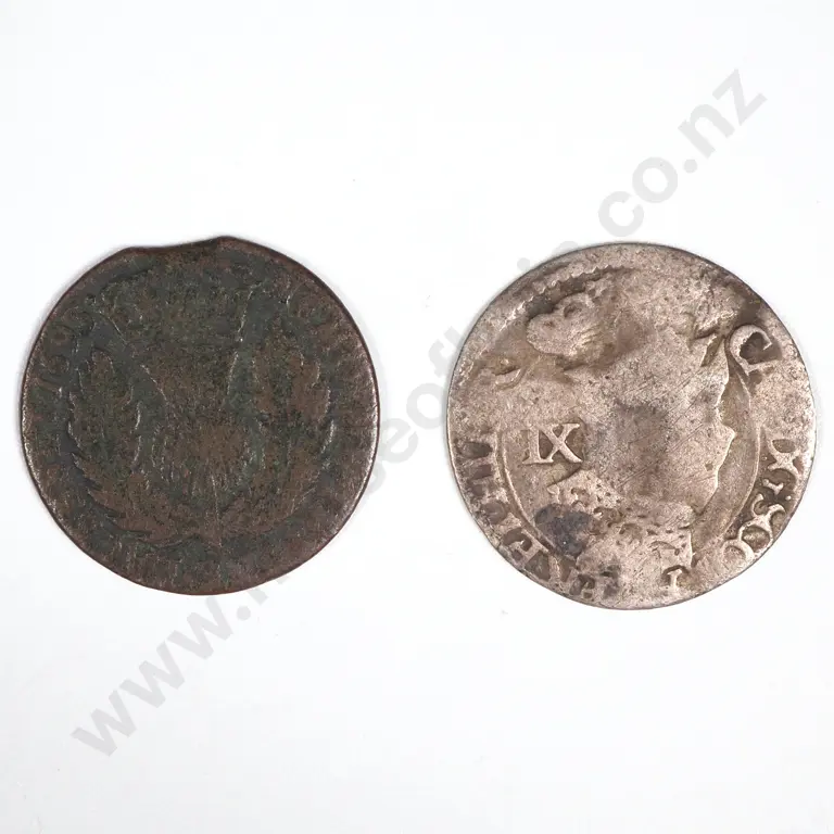 1693 Scotland Two Pence & A 1690s 4 Pence.Small Silver & Copper Coins. Worn As Usual. Small Chip On 2d Coin