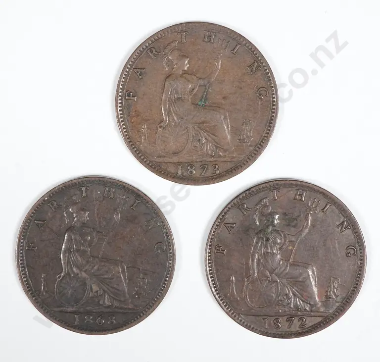 1868,1872, 1873 Great Britain Farthings. Victoria Young Head. Sun Type.