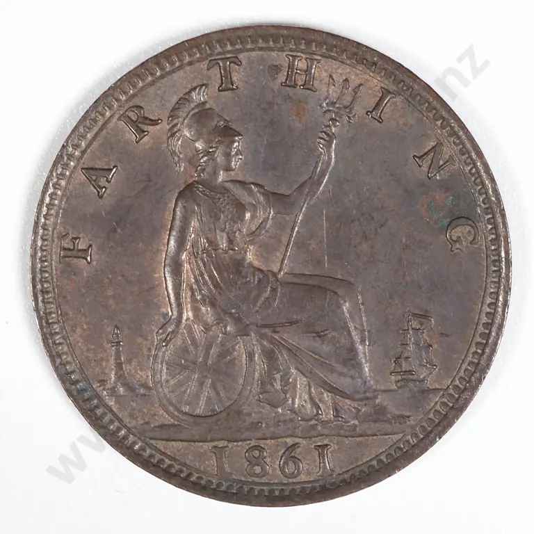 1860 Great Britain Farthing - Toothed Border. Nice Clear Coin With Few Scratches. First Year Of Bronze Type