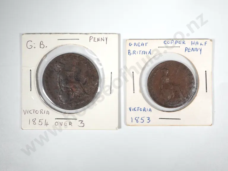 1854 /3 United Kingdom Penny & 1853 Half Penny