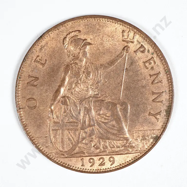 1929 Great Britain Penny - With Some Lustre. Several Obverse Spots. Reasonable Lustre