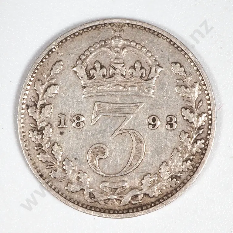 1893 Great Britain Threepence - Scarce Type. Victoria Head (This Date Is Usually Old Head) Few Small Blemishes But Clear