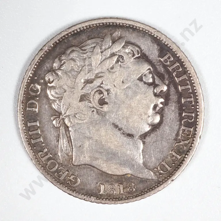 1818 Great Britain Sixpence - George III. Reasonably Clear, Sterling Silver