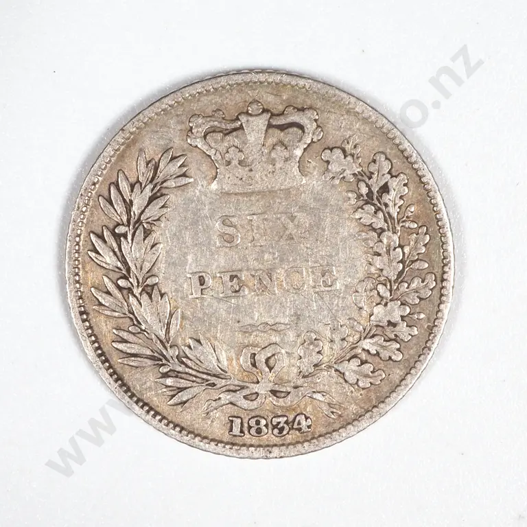 1834 Great Britain Sixpence. William IV. Sterling Silver