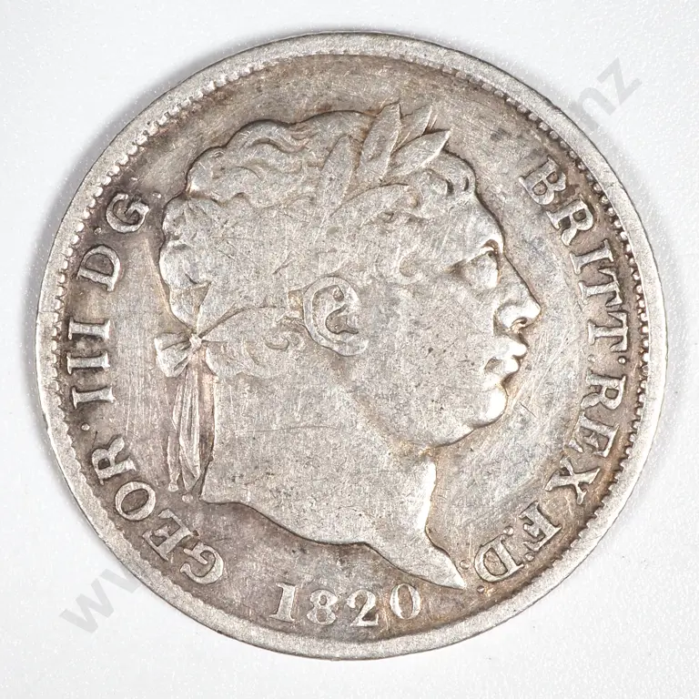 1820 Great Britain Silver Shilling George III. Very Faint Cross Bar In 'H' Of Honi On Reverse.