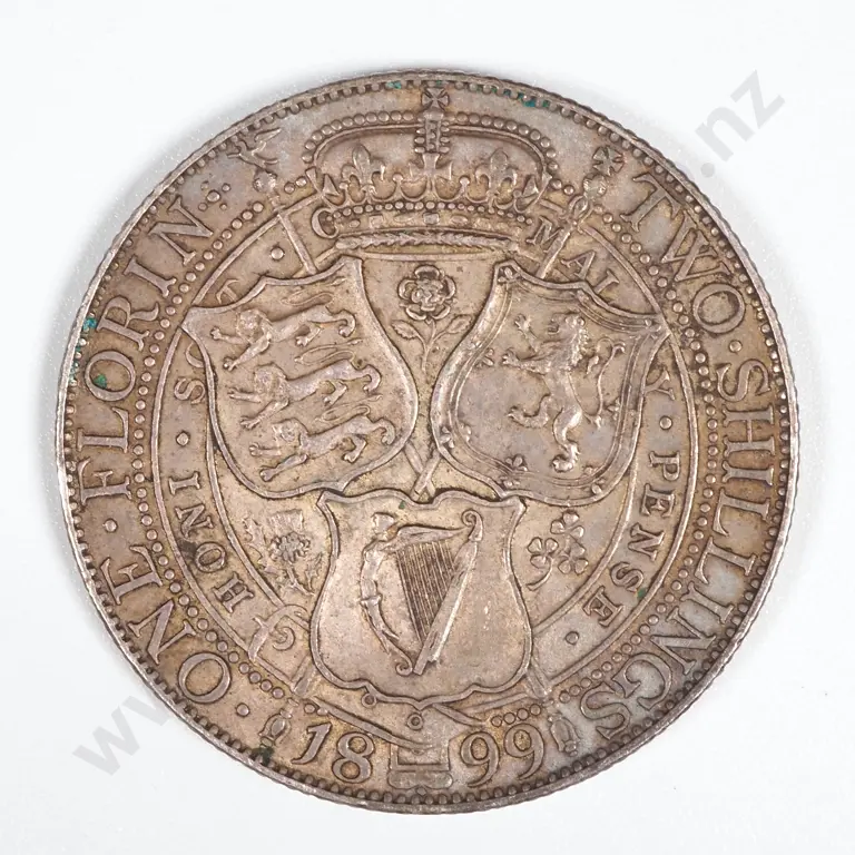 1899 Great Britain Silver Florin - Toned, Pleasant Coin. Sterling Silver