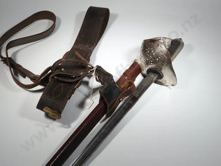 1898 Pattern Infantry Sword - George V. Made by Wilkinson. Leather Scabbard & Sam Brown Belt & Frog.