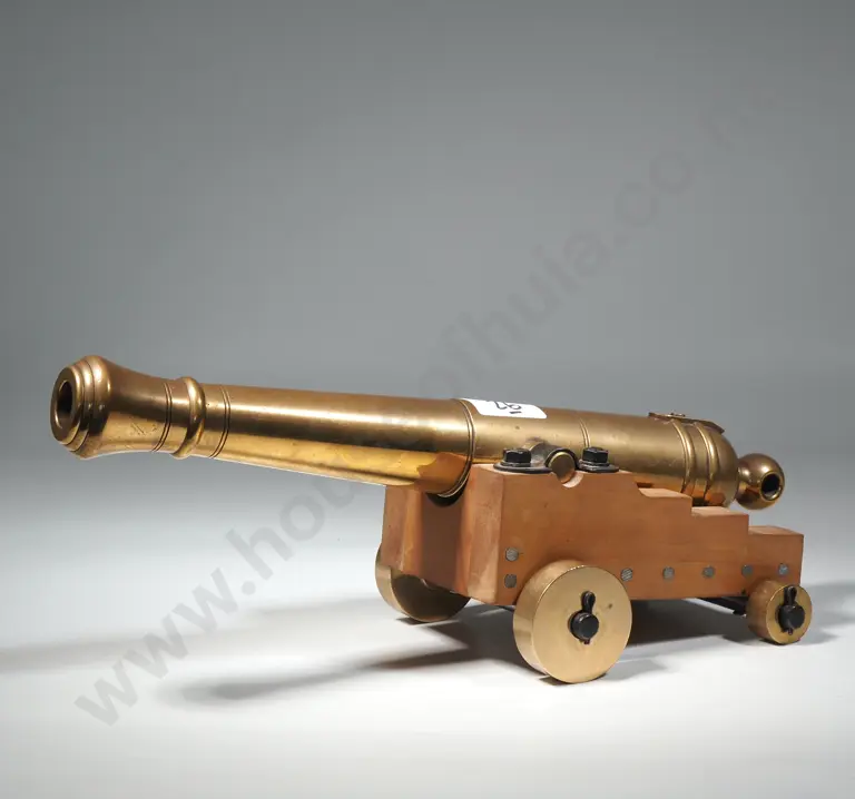 Small Brass Scale Model Of A Cannon Mounted On A Wooden Carriage w Brass Wheels - Able to Be Fired with Black Powder Estimate: $400 - $600