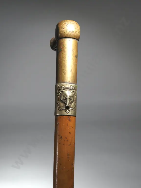 WW1 Royal Marines Swagger Stick w Silver Plated Brass Pommel, Brass Ferrel, Wooden Shaft & Two Photographs