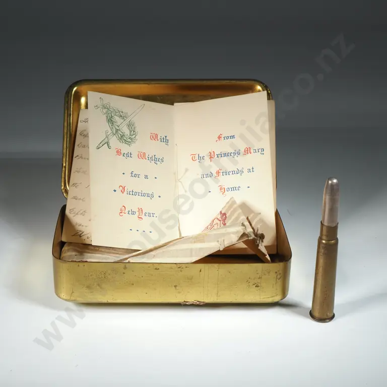 1914 Princess Mary Gift Tin w Original Pencil / Christmas Card & Segment of Tissue Paper