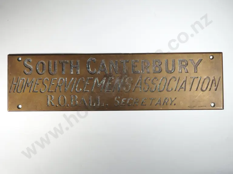 Brass Door Sign "South Canterbury Homeservicemen's Association R.O .Ball Secretary - Moller Dunedin
