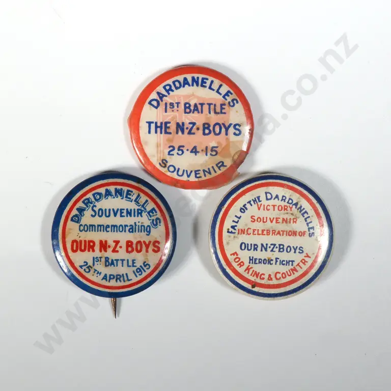 Three WW1 New Zealand Dardanelles Patriotic Pins