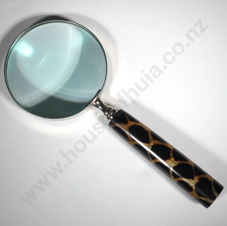 Large Boxed French Country Magnifying Glass with Tiger Pattern Horn Handle