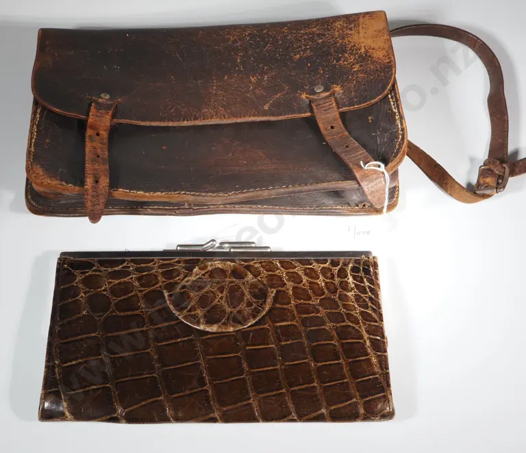 Vintage Leather School Satchel & Ladies Leather Clutch