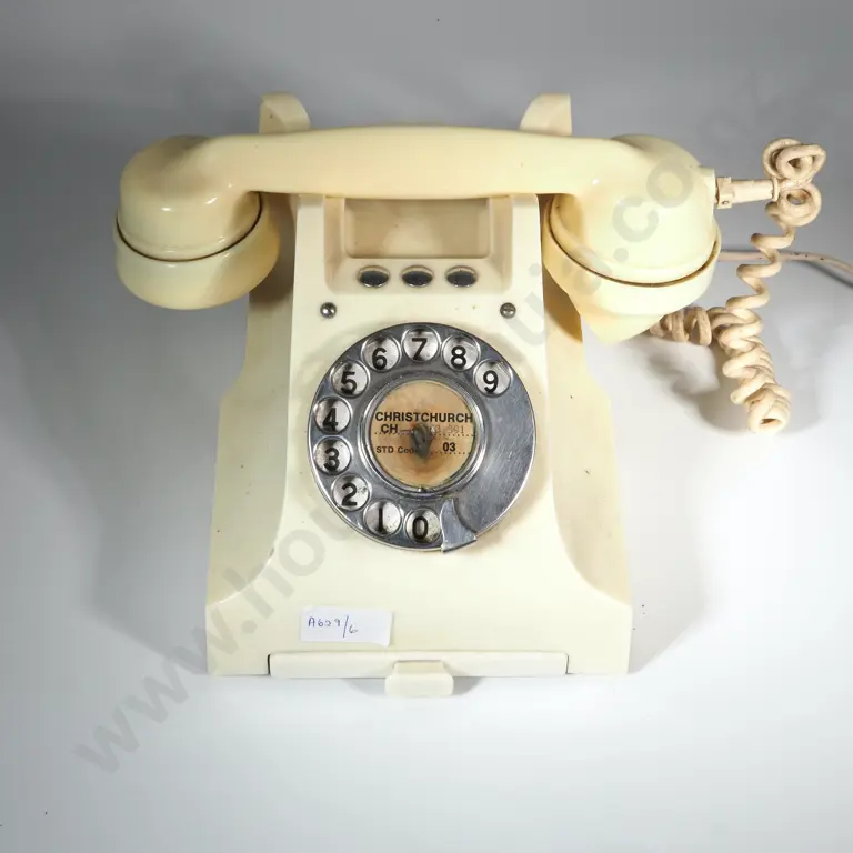 Mid Century White Bakelite 300 Series Telephone With Original Tray