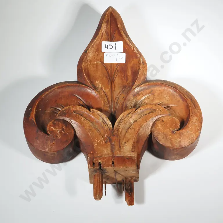 Decorative Wooden Carving In The Shape Of A Fleur De Lis, Featuring The Number 40. Possibly From A Boys Scouts Board
