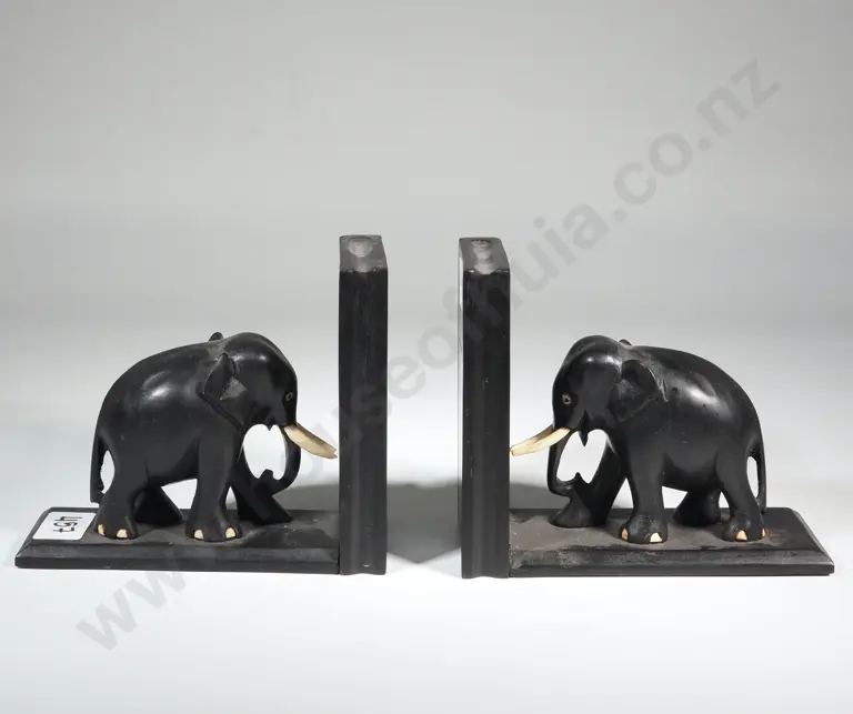 Pair Of Ebony Elephants Bookends. Circa 1940s. Circa 1930s