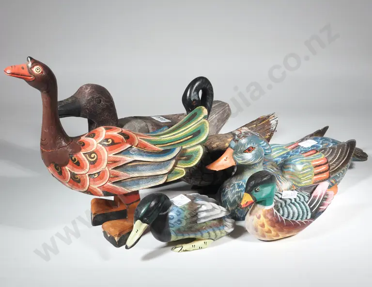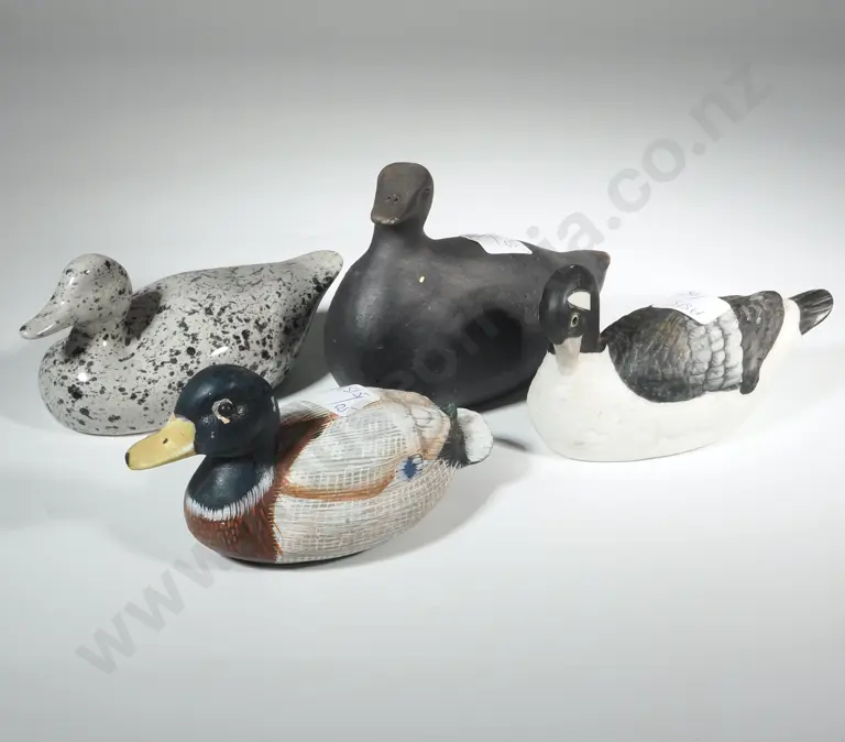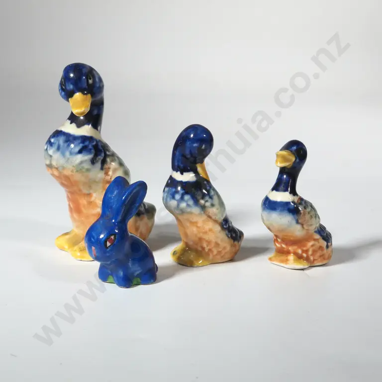 Three Miniature Duck Figurines & A Blue Glazed Rabbit