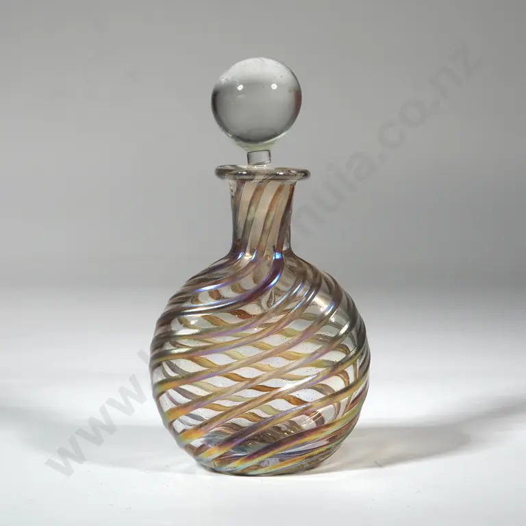 Glass Perfume Bottle & Stopper w Opalescent Ribbed Pattern.