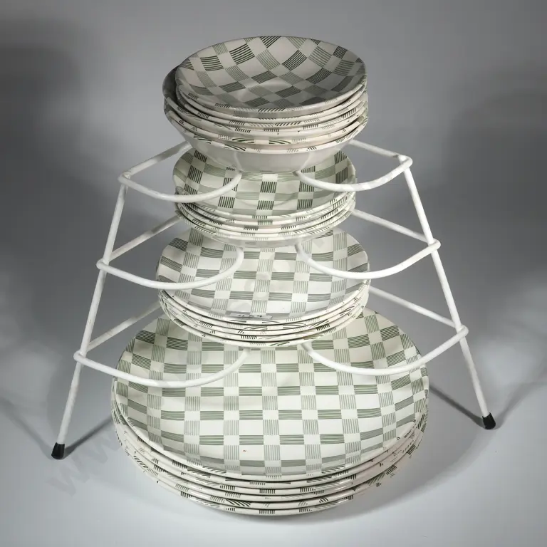 Part Crown Lynn Dinner Set In The Green Gingham Pattern Complete with Retro Plate Rack Estimate: $40 - $80