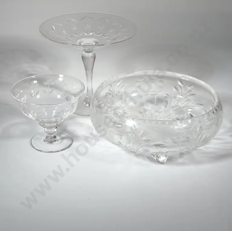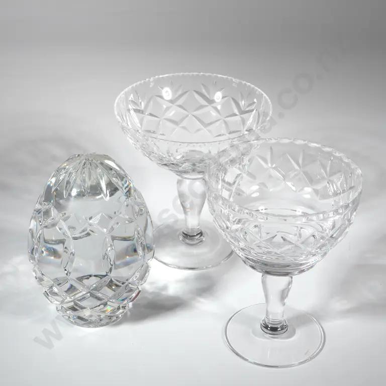 Two Crystal Stemmed Sweet Dishes (One Webb & Corbett) & A Crystal Paperweight