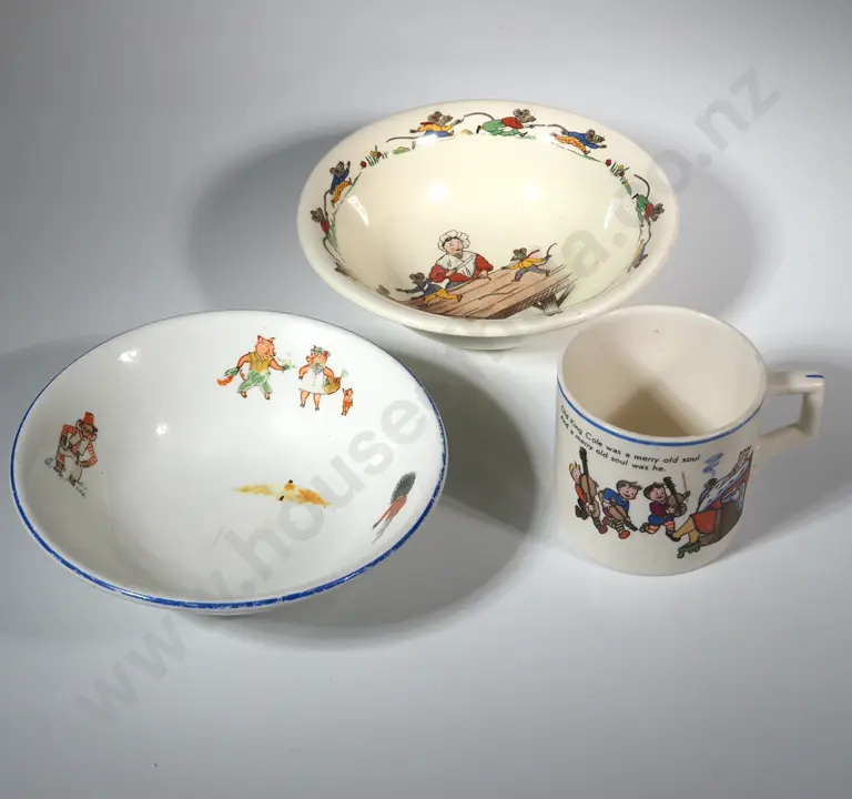 Childs Falcon Ware Nursery Rhyme Mug & Bowl & Another Child's Bowl