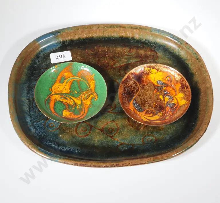 Paul Wotherspoon Pottery Tray & Two 1970s Enamel & Copper Dishes Estimate: $40 - $80