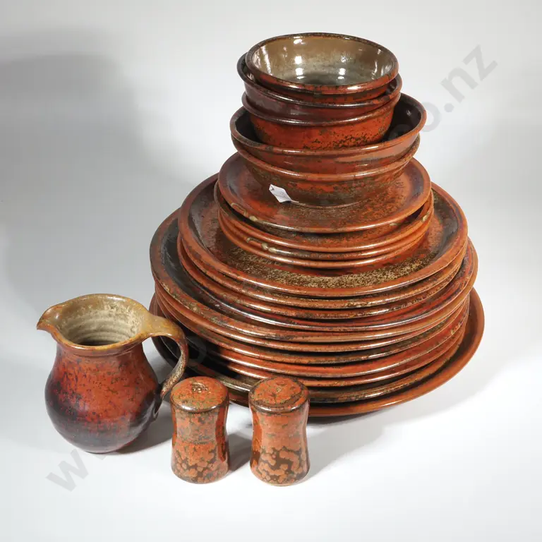 Large Collection Of Vintage Brown Glazed New Zealand Pottery