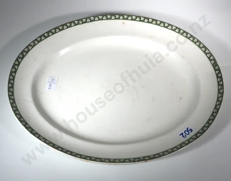 Large Oval Burgess & Leigh Oval Ashet. White With Green Trim
