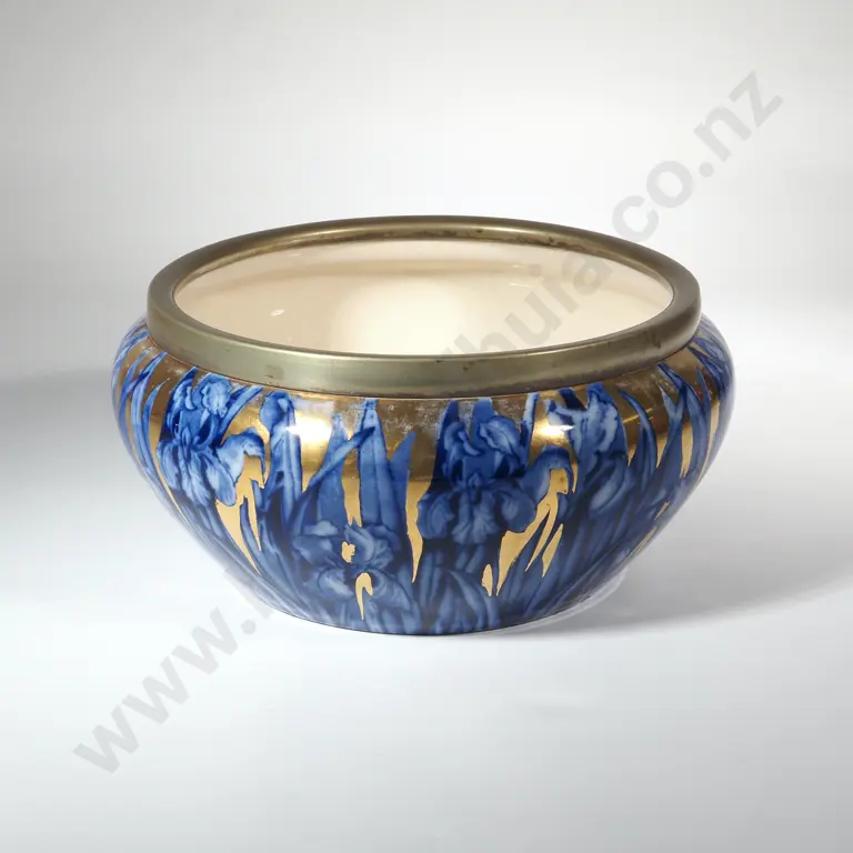 Blue & Gold Wardle China Fruit Bowl With Silver Plate Rim In The Iris Patter n
