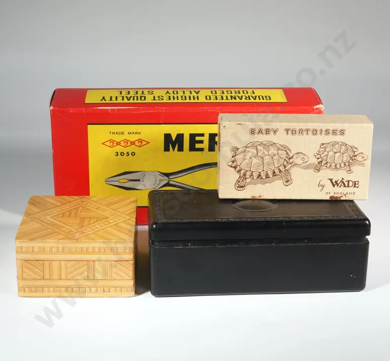 Four Various Boxes Including a Decorative Black Bakerlite Box