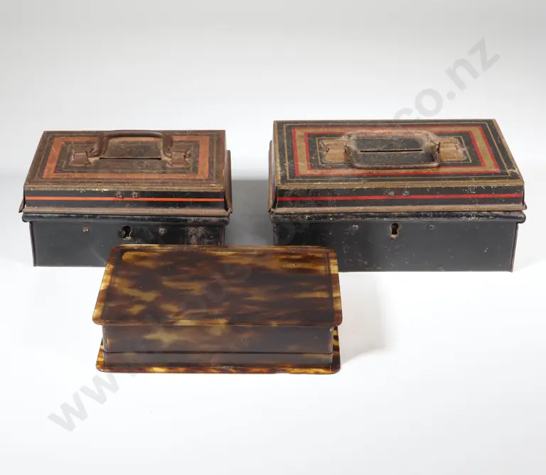 Two Metal Money Boxes & Faux Tortoiseshell Box