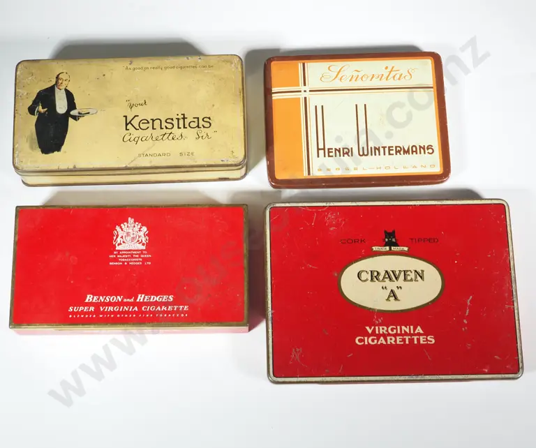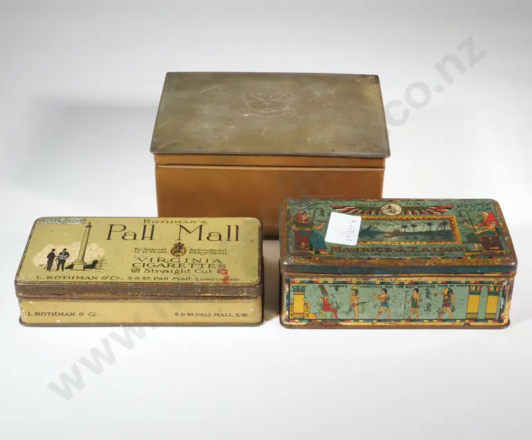 Bag Containing Four Cigarette Tins Including a Large Brass Express Cigarette Tin