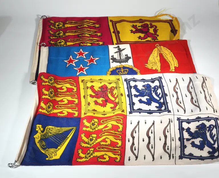 Three Pennants - One Displaying The Late Queens Personal Flag For New Zealand 1962, The Royal Standard