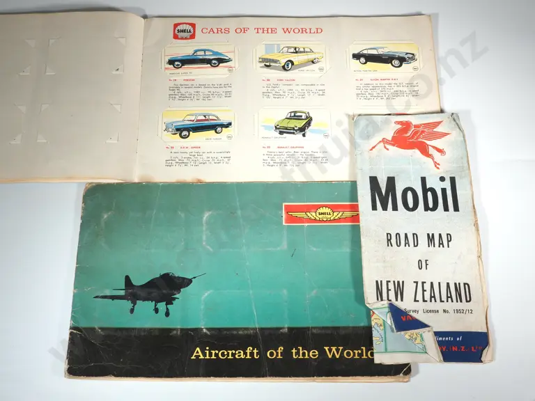 Shell Pamphlets " Aircraft Of The World" & "Cars Of The World" & Mobil Road Map Of New Zealand