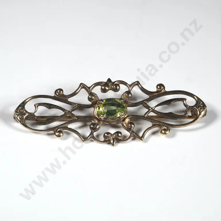 Delicate Sterling Silver Gilt Brooch Set w Green Gem