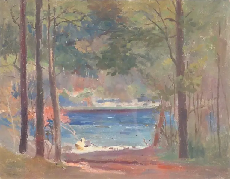 S. Croft. Landscape - Lake View. Oil on Board.