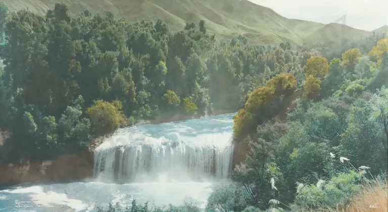 Whites Aviation. Hand Coloured Photograph Of Raukawa Falls.