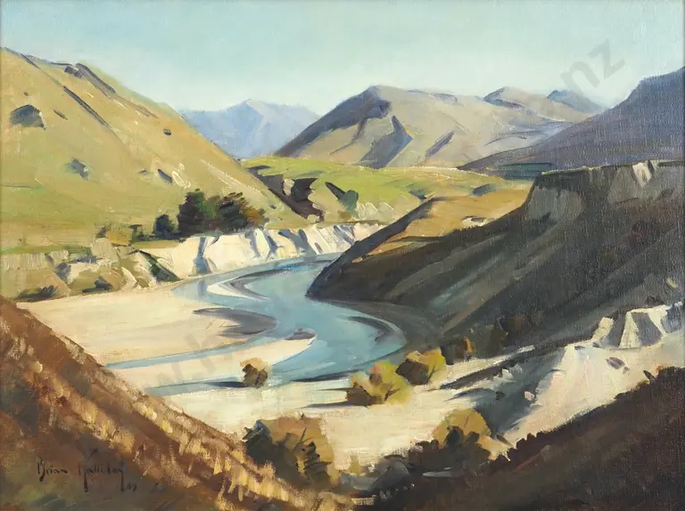 Brian Halliday. 1969. Shotover River. Oil On Board.