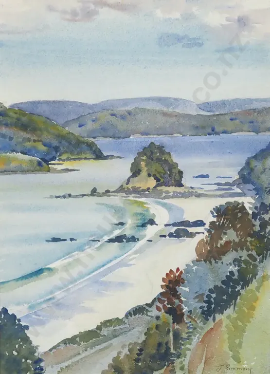 Joy Simmons. Ringa Ringa Beach, Stewart Island. Watercolour.