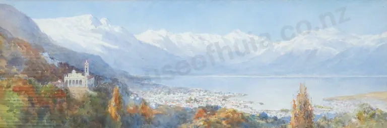 C N Worsley. Madonna del Sasso, Locarno, Laggo Maggiore. Watercolour.