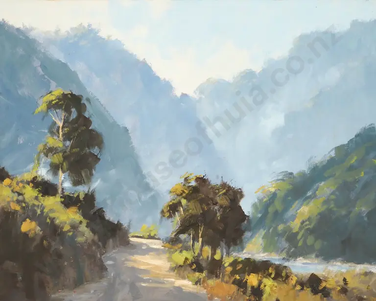 Wayne Sinclair. Road Through Makaropa Bush. Oil on Board.