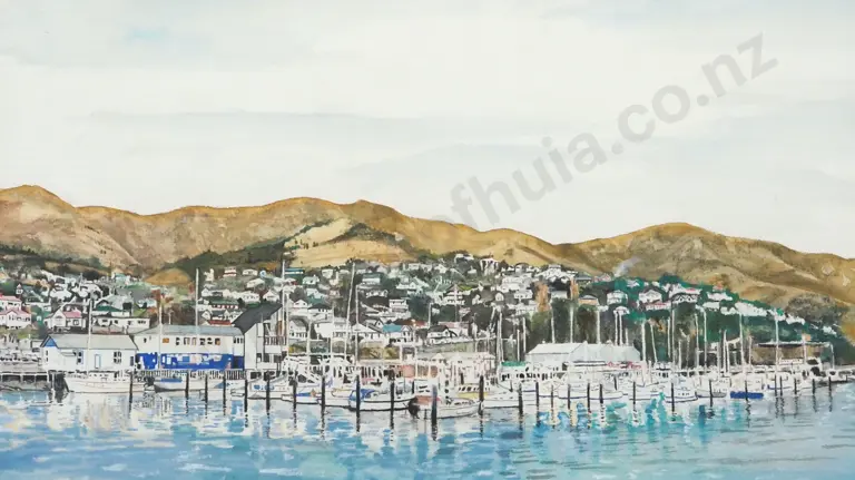 R.L. Stevens. Lyttleton Harbour. Watercolour.