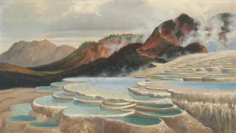 The Pink & White Terraces. Oil On Canvas.