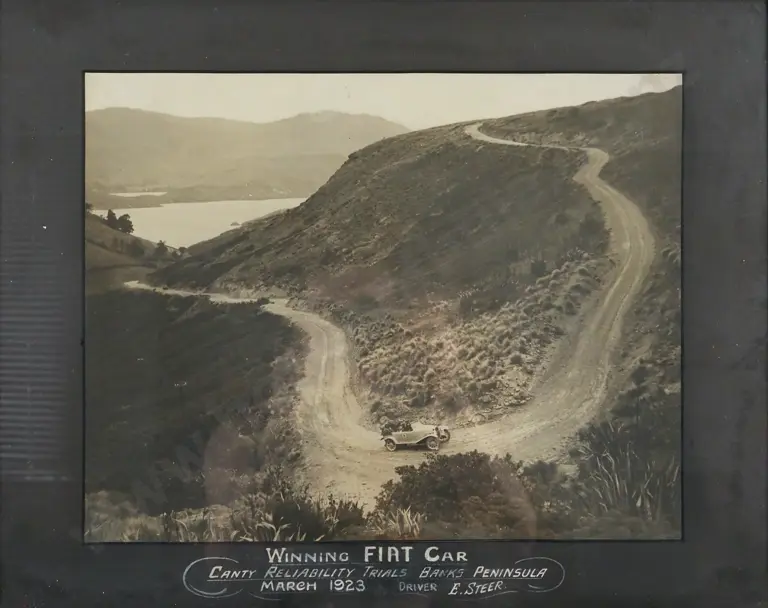 1923. Winning Fiat Car - Canterbury Reliability Trials, Banks Peninsula. Sepia Tint Photograph.