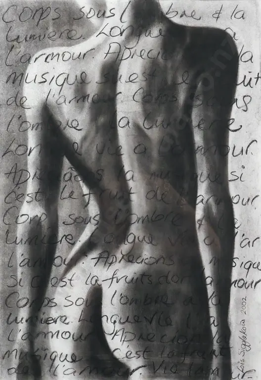Lois Sigglekow. 2002. Nude Overlaid w French Writing.