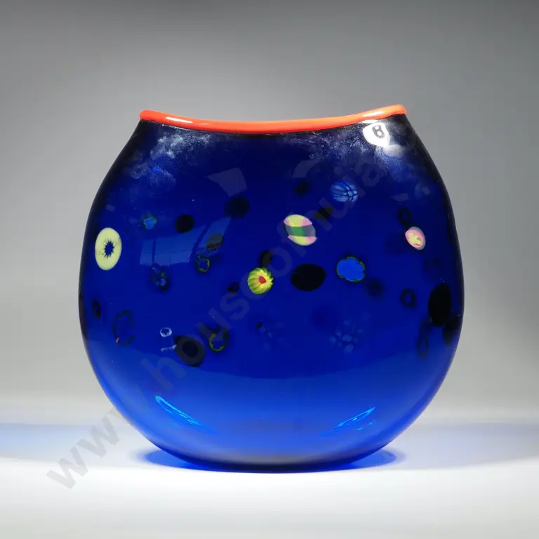 Gary Nash, Blown Cobalt Blue Glass Vase with Multi Coloured Scattered Murrines. Signed & Dated