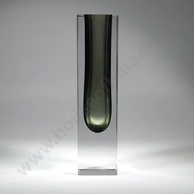 Vintage Murano Sommerso Smoky Gray Art Glass Square Form Vase.